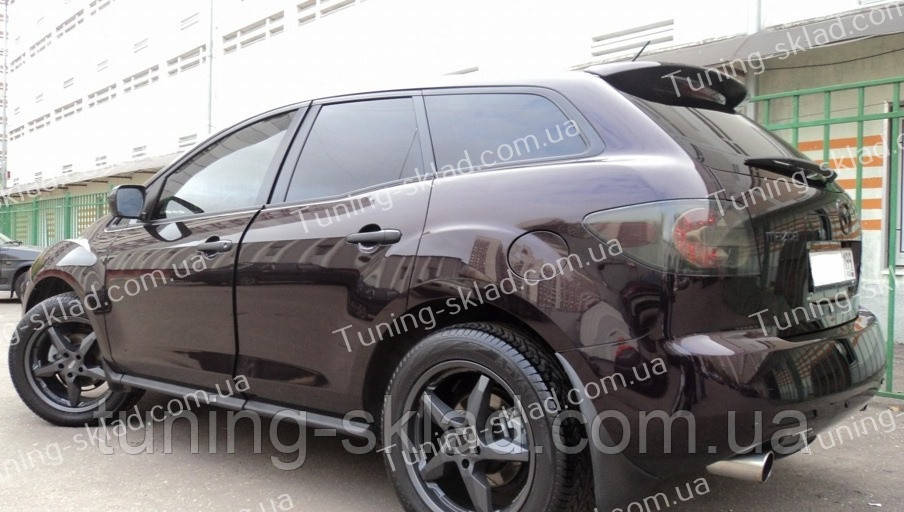 Спойлер Mazda Cx-7 (оригінальний дизайн). Матеріал виготовлення формований пластик. Кріплення на поліуретановий герметик. Спойлер для Мазда Сх-7 підкреслює індивідуальність автомобіля, робить його зовнішній вигляд значущішим, й естетично завершеним. Вага аксесуара: 1.3 кг. Спойлер уже заґрунтований під фарбування.